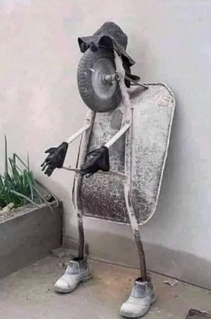 Hombre de pie, confeccionado con una carretilla vieja