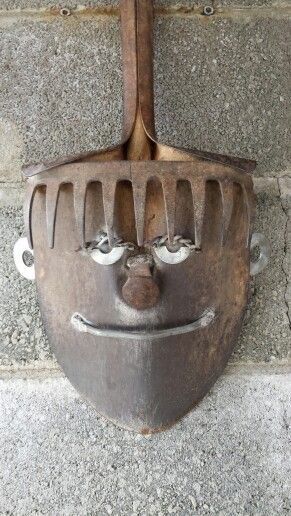 Cabeza de un joven, elaborado con una palana y rastrillo viejos